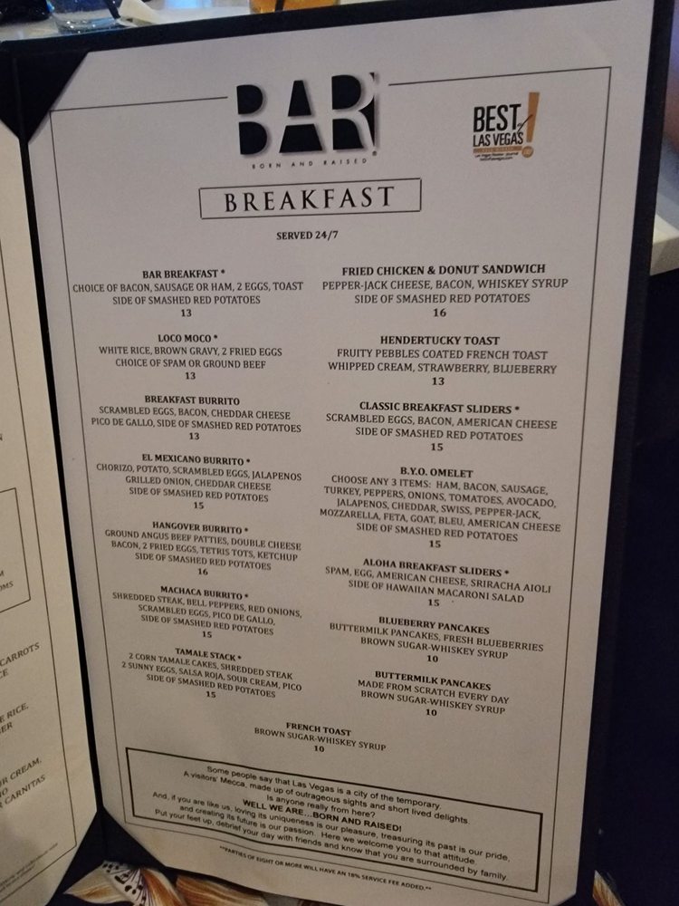 Born And Raised, a sports bar located at 1125 E Craig Rd North Las Vegas, NV 89030, offers a trendy and intimate atmosphere perfect for casual gatherings. With a full bar, happy hour specials, and a pool table, it's a great spot for groups to enjoy a night out. The menu features a variety of options from breakfast dishes like the Bar Breakfast and Loco Moco to bar bites such as Chicken Taquitos and Shredded Steak Poutine. The salads, like the Grilled Chicken Caesar and the Bar Signature Salad, are flavorful and fresh. Customers praise the strong drinks, quick service, and delicious food, with standout items like the tater tot appetizer and signature salad receiving high praise. Born And Raised is a must-visit for those looking for a fun and tasty dining experience in North Las Vegas.